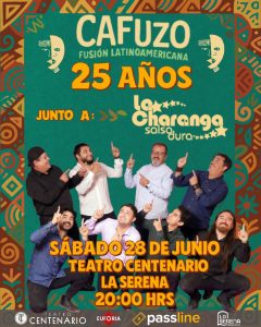La banda Cafuzo Fusión Latinoamericana celebrará sus 25 años de trayectoria artística con un concierto el sábado 28 de junio a las 20:00 horas en el Teatro Centenario de La Serena. La jornada contempla un recorrido musical por los tres discos editados por el grupo —incluyendo material inédito—, además de colaboraciones con invitados especiales vinculados a sus proyectos recientes.