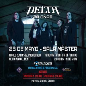 La banda chilena de metal progresivo Delta se prepara para conmemorar las dos décadas del lanzamiento de su primer álbum, “Apollyon is Free”, con un concierto especial que tendrá lugar el próximo 23 de mayo en Sala Master, ubicada en Miguel Claro 509, Providencia, Santiago. Este evento promete ser una velada única donde se repasará parte fundamental del repertorio que marcó el inicio de su carrera y lo nuevo, en compañía de desatacados músicos invitados.