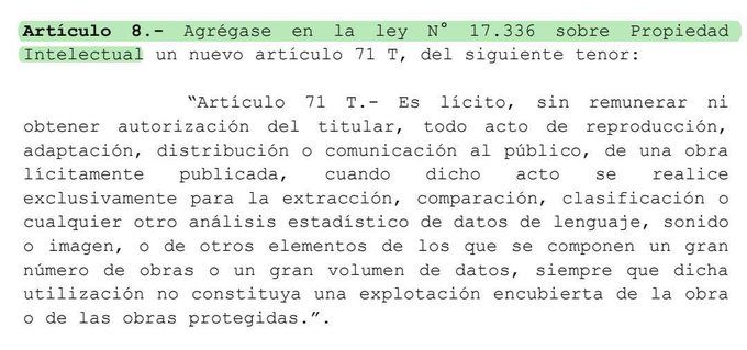 El texto es claro (y para muchos, inquietante). La propuesta permitiría el uso, reproducción, adaptación e incluso comunicación pública de obras protegidas sin autorización ni pago, siempre que estas sean utilizadas para procesos de análisis de datos, como el entrenamiento de inteligencia artificial a través de minería de datos (TDM).