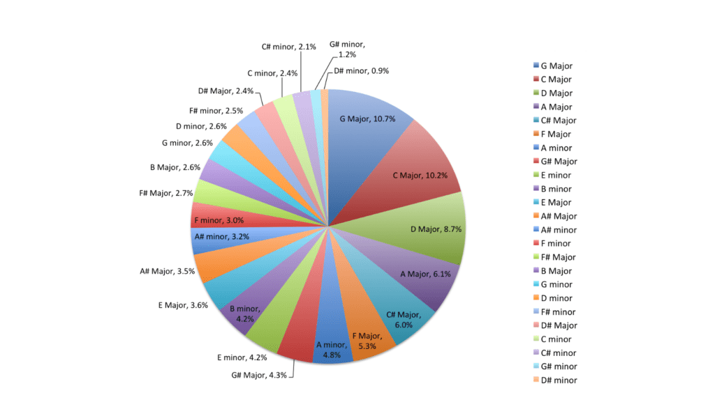 Kenny Ning, analista de datos Spotify y pianista jazz se encargó de analizar la tonalidad de cada track en la plataforma para determinar la frecuencia con que aparecen.