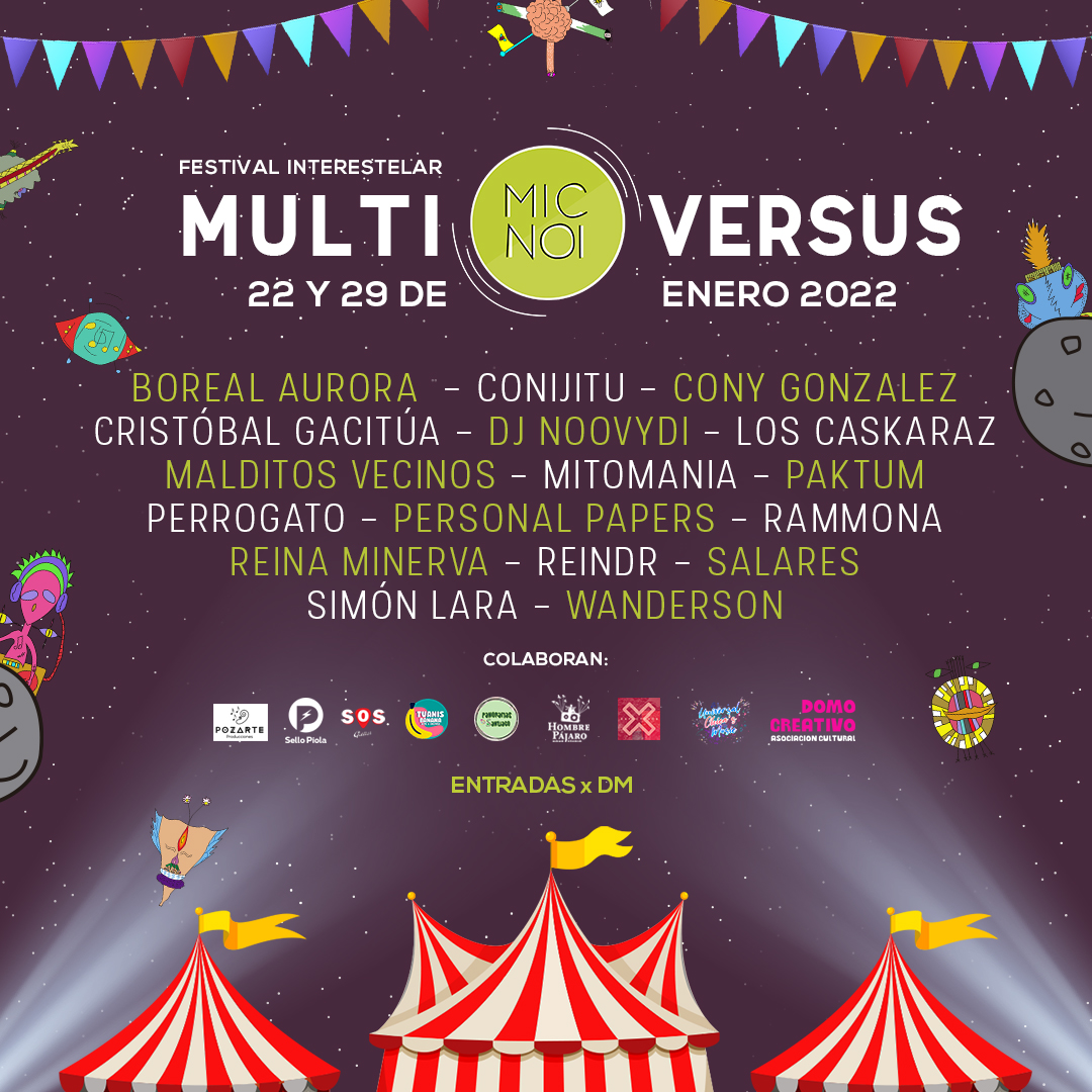 Los días Sábados 22 y 29 de Enero del 2022, la plataforma de difusión independiente musical «MICNOI», celebrará sus 4 años de vida apoyando y difundiendo a diversxs artistes a través de festivales on line, entrevistas, menciones y playlists , con la 2da versión del Festival Interestelar «MULTIVERSUS». Ahora presencial y con temática de Circo. […]